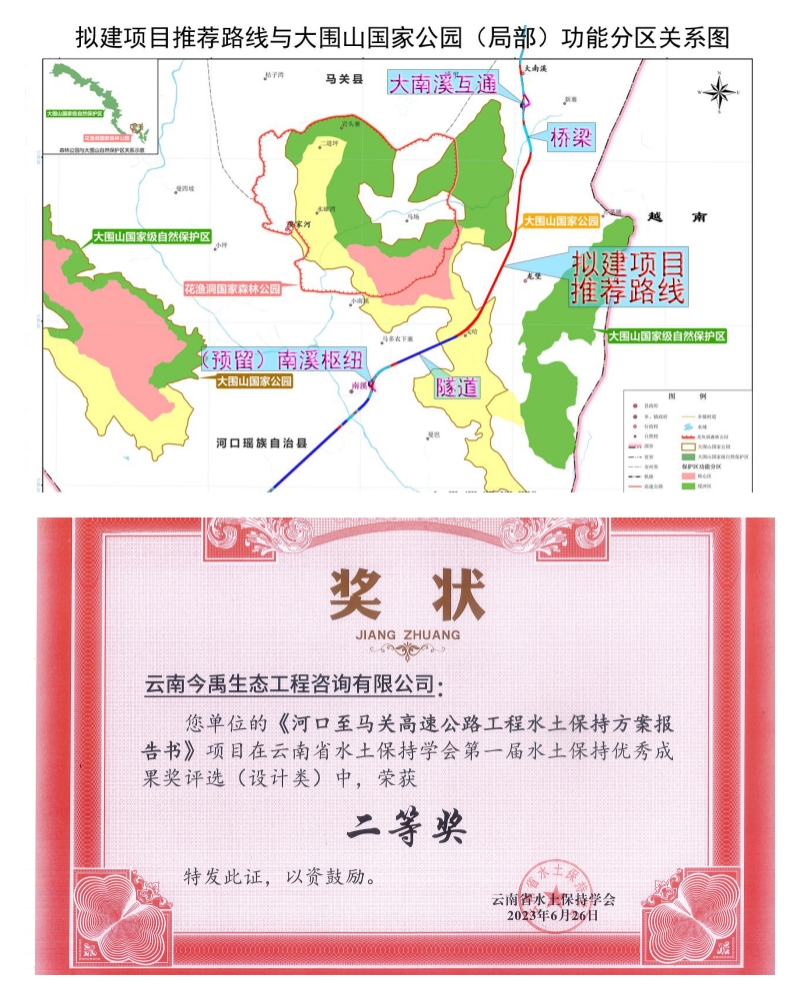 該項目存在以下技術(shù)難點:①項目屬于沿邊高速,線路走向限制因素和敏感因素較多,其中經(jīng)過云南大圍山國家級自然保護區(qū)、河口南溪河水生野生動物州級自然保護區(qū)、南溪河風(fēng)景名勝區(qū)、馬關(guān)縣古林箐省級自然保護區(qū),占用永久基本農(nóng)田、生態(tài)保護紅線、公益林等范圍。②項目橋隧比高,產(chǎn)生棄渣量較大,由于沿線限制及敏感因素問題,棄渣場選址困難,為了避讓沿線限制及敏感因素,棄渣場選址經(jīng)過多次優(yōu)化,多次復(fù)核,多次與相關(guān)管理部門協(xié)調(diào)溝通,最終選定52個棄渣場。③由于項目水保方案編制時主體設(shè)計已到初設(shè)階段,建設(shè)單位將項目以州界劃分為兩個標段,分別委托兩家公司承擔(dān)兩個標段的初步設(shè)計工作,主體設(shè)計分為兩部分,在水保方案編制過程中增加了數(shù)據(jù)統(tǒng)計量、項目溝通和手續(xù)辦理等方面的工作量,但為后期變更、監(jiān)測和驗收數(shù)據(jù)對比節(jié)省了較大的工作量。